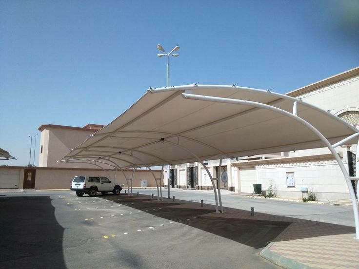 🧱 1. مظلات سيارات قماش PVC وPVDF