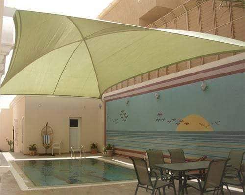 وتتضمن خدمات المقاول أيضًا تصميم مظلات خاصة للمسابح، ومنها: