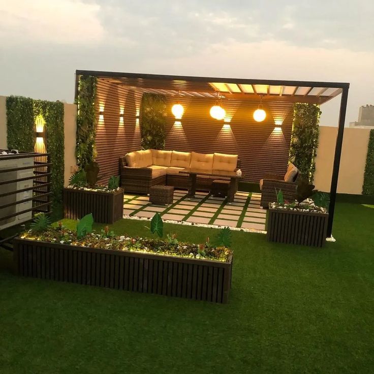 تُنفذ برجولات جلسات خارجية مع إضاءة لتكون مساحة مثالية للاسترخاء أو استقبال الضيوف. فالإضاءة المدروسة تخلق أجواء دافئة وتزيد من فاعلية الجلسة في المساء.